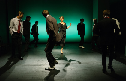 Честно скажу, стихи Введенского очень сложные и самые... Скушные в спектакле. Зато какой смачный Заболоцкий! Актер совершенно невзрачный, и в очках, и дурацкий пробор, и зализанные волосы. Но он просто читает стихи - и ты влюбляешься! А Хармс! Он какой то кузнечик, он весь как гротеск, в своем карикатурно зауженном костюме, который облипает его худосочную наружность.
